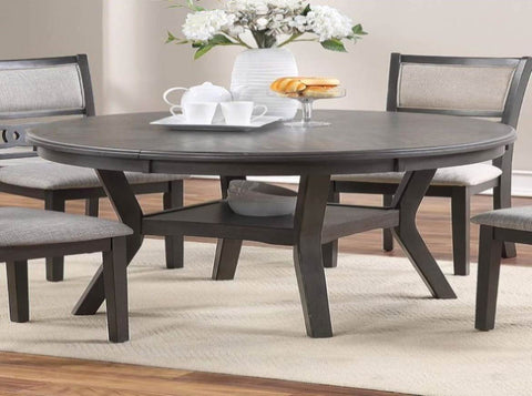 Dining Room Furniture Gray Oak Rubber wood MDF Round Table 1pc Table w Shelve B01156000