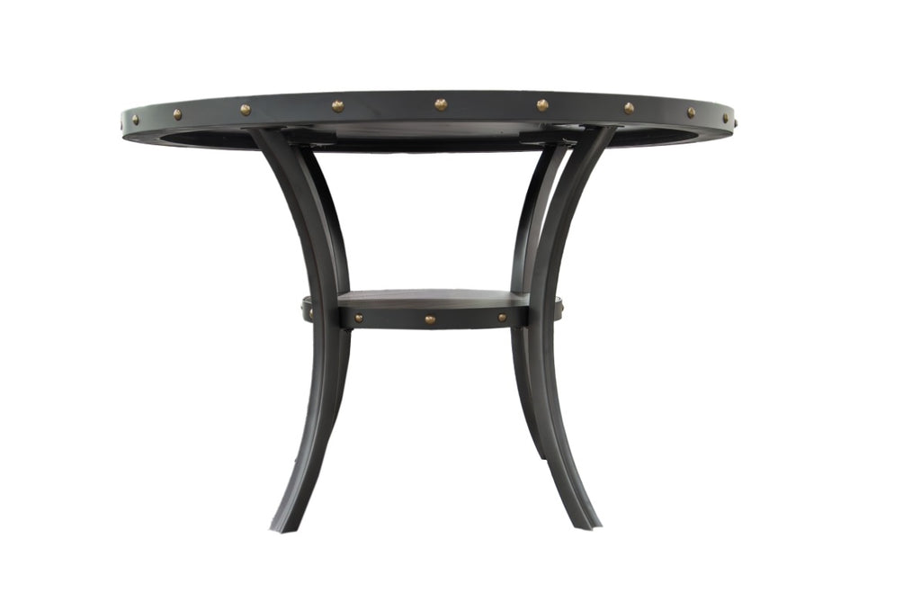 Description:- This Round Dining Table is a perfect addition for smaller dining spaces. The table will become the focal point of your dining experience, featuring a nail head trim and bottom storage. Product Dimensions:- Table : 48"DIA x 30"H Simple assembly require.
