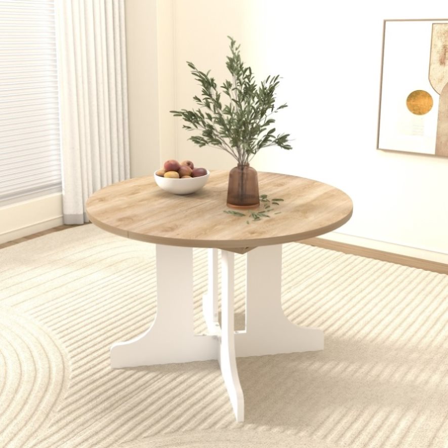 Elegant round dining table: With a round tabletop and X-shaped base, this table represents an elegant and temperament atmosphere. Moreover, the adjustable dining table length makes this dining set suitable for any size room.