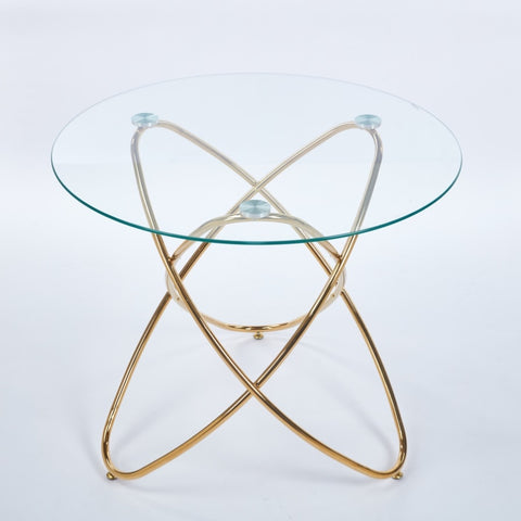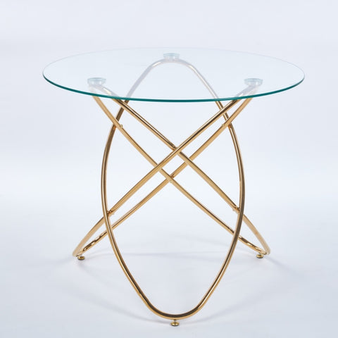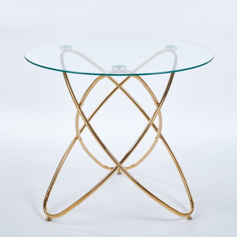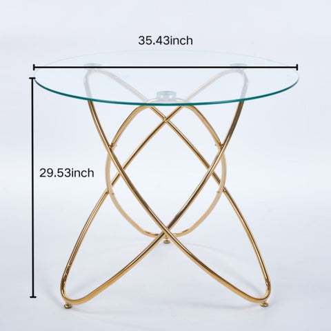 Dining Table with golden metal leg and tempered glass,Modern Space Saving Kitchen Table for Living W234P329699