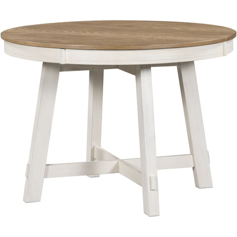 Taking into account the use of different scenarios, the table adopts a flexible design and the length can be adjusted. The round table's planked top is eased along the edges, then insert a leaf, and it can extend to accommodate additional guests. Table expands from 42'' to 56'', seats up to 6.