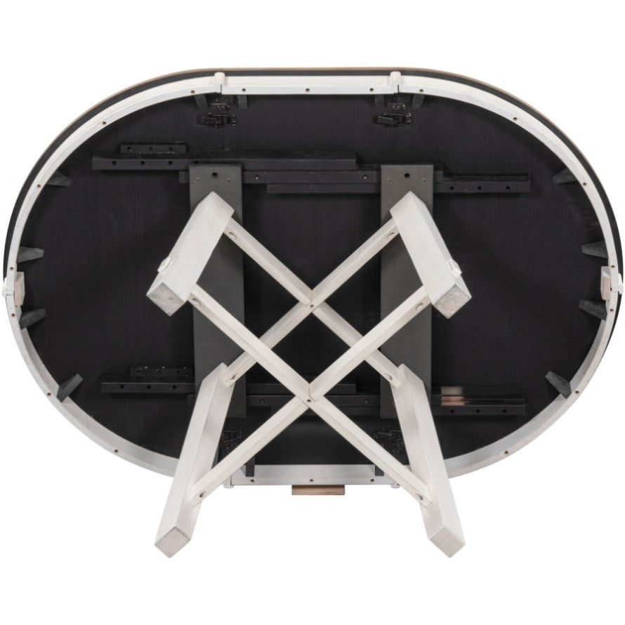 Elegant round dining table: With a round tabletop and X-shaped base, this table represents an elegant and temperament atmosphere. Moreover, the adjustable dining table length makes this dining set suitable for any size room.