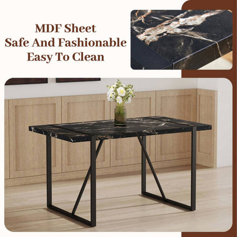 Industrial rectangular MDF black dining table for 4-6 people with 1.5 inch thick MDF top and black W1151P185154