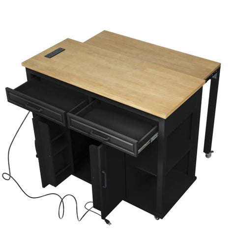 K&K 47 inch Kitchen Island with Extendable Dining Table, Rubber Wood Veneer Kitchen Table with N707P215327B