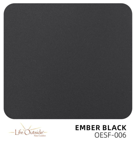 Elegant Black Sintered Stone Tabletop with Seamless White Veining – Crafted for durability and style, the sleek tabletop pairs beautifully with the heavy-duty, rust-free aluminum base, ensuring long-lasting stability. The Ember Black powder-coated finish enhances weather resistance and offers a refined, modern appeal that seamlessly blends into various outdoor settings.