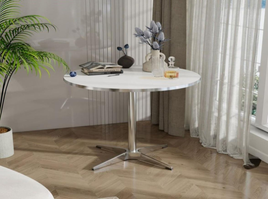Fashionable and minimalist style: The classic circular desktop design is simple and modern, suitable for various home styles, and can be easily matched with different chairs or furniture.
