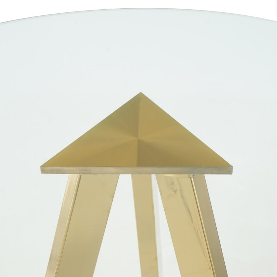 Modern minimalist round glass dining table, transparent glass tabletop and electroplate metal legs, suitable for kitchens, restaurants, and living rooms
