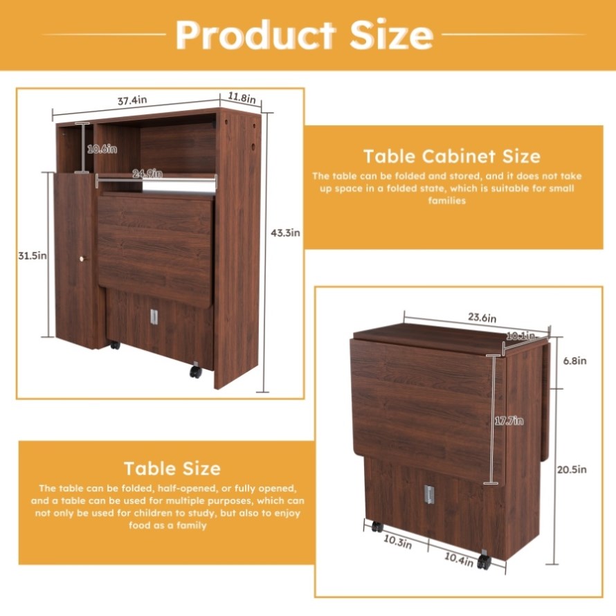 This is a multifunctional, eco-friendly folding dining table designed for small apartments. The product consists of two parts: a sideboard that attaches to the wall, equipped with sockets and cabinets for storing electrical appliances, tableware, and beverages. The dining table can be fully folded and stored underneath the sideboard, maximizing space efficiency. The table can be partially opened or fully extended; partially open, it serves as a temporary dining or working space for two people. Fully extended, it can accommodate 4-6 people for dining. Additionally, the area beneath the table is designed as a storage layer for tableware and other kitchen essentials. This furniture item maximizes space utilization and will bring you great convenience.