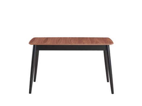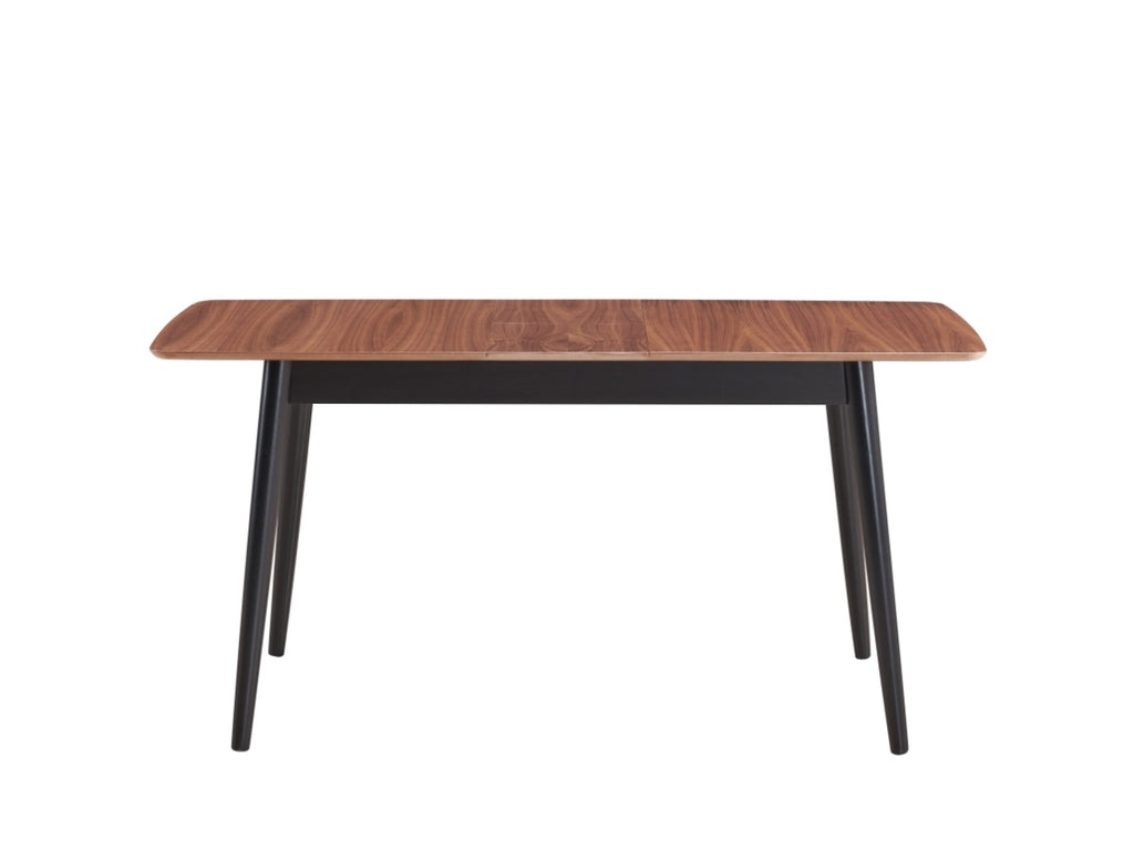 The rectangular shape of the table offers a spacious surface area ideal for dining, comfortably accommodating multiple people while fitting seamlessly into various room layouts. Featuring wooden turned legs for classic elegance and a butterfly leaf that easily expands for larger gatherings, the combination of a natural wood finish with a sleek black base creates an eye-catching contrast that enhances the table's versatility and complements a wide range of decor styles.