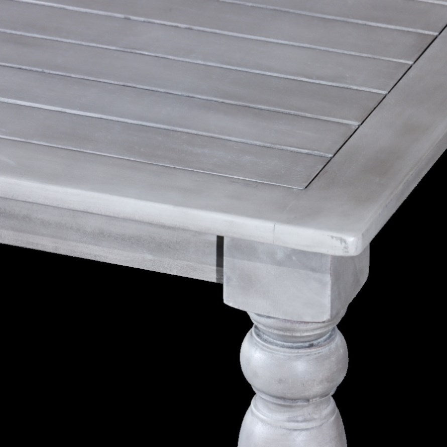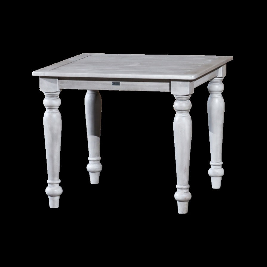 STYLISH DESIGN: Casual yet stylish this dining table is sure to make your summer gatherings a success. The square table features beautifully turned legs, an umbrella hole and plug and a glazed Silver Gray finish.