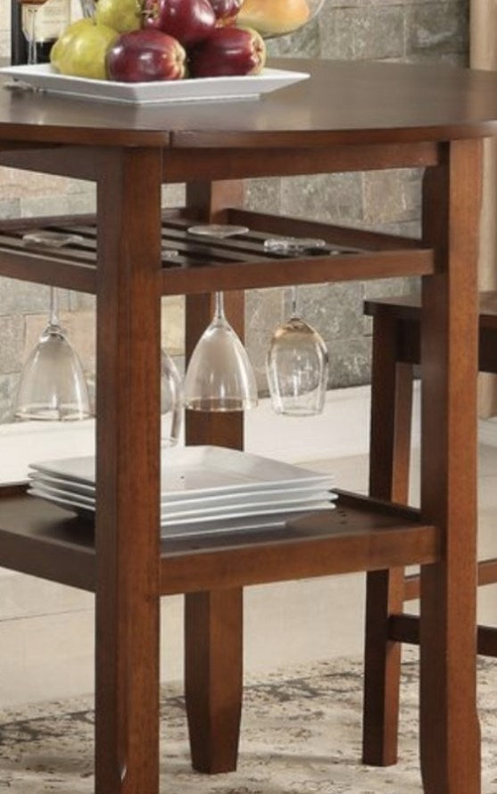 KD, Round Counter Table, Storage: Steam ware Rack & Open Compartment (1 Wooden Fixed Shelf)•Extension Leaf: 2 Drop Leaves (Size 8"D), Wooden Top, Wooden Square-Tapered Leg