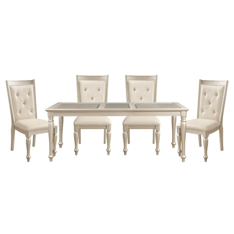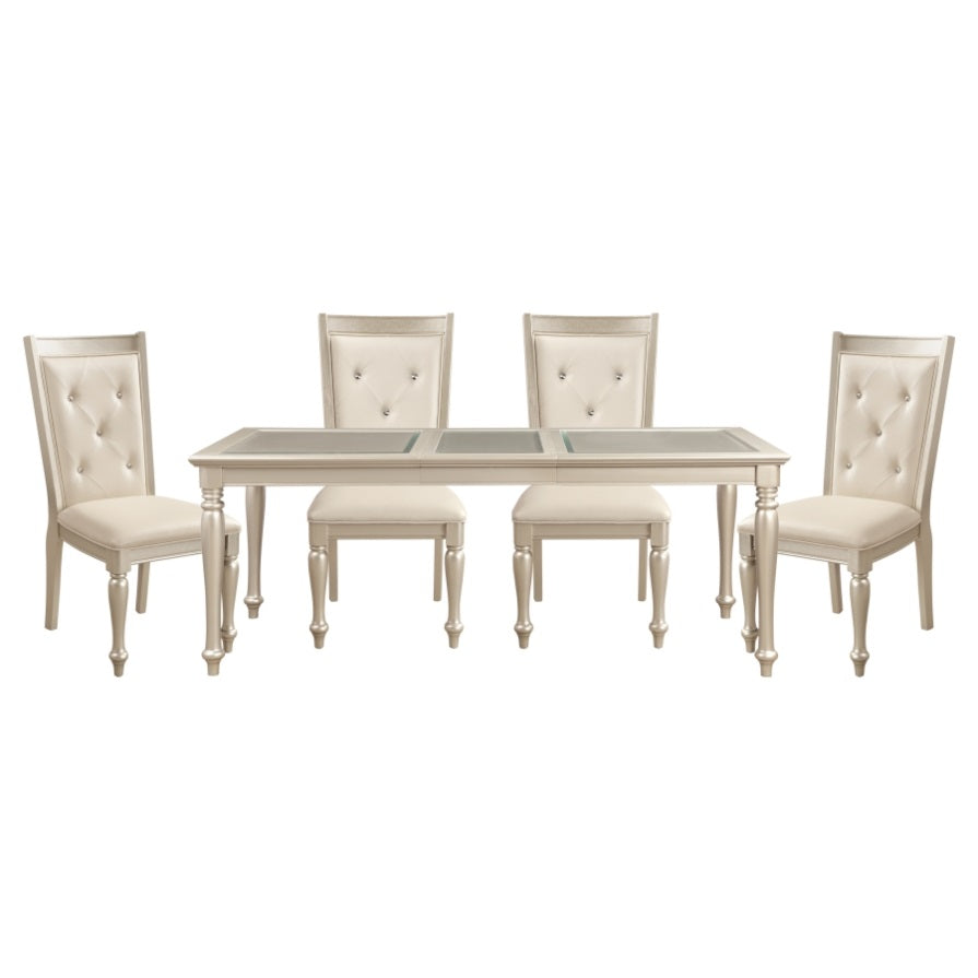 Traditional Design Silver Finish Dining Table 1pc Extension Leaf Glass Insert Top Formal Dining Room B01152850