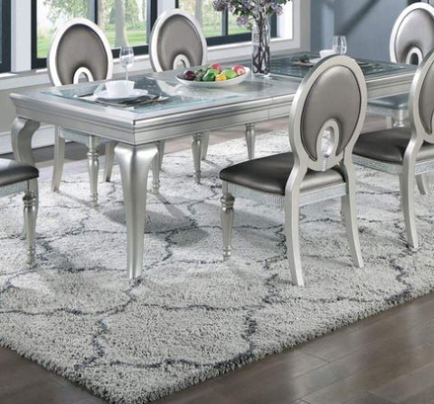 Traditional Dining Table Rectangle Table Silver Hue 1pc Dining Table Glass Insert Dining Room B011P322613