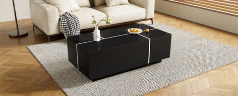 The pull-out hidden compartments on both sides and two large drawers form an efficient storage system, keeping clutter organized for a tidy space. Crafted from premium MDF, it ensures robust durability and stability, blending a sleek aesthetic with long-term reliability. Seamlessly fitting modern, minimalist, and various home styles, this coffee table serves as a core living room piece that balances aesthetics and practicality.