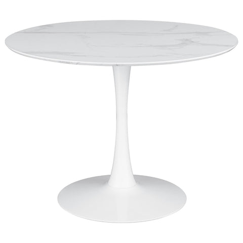 Bright white faux marble top adds elegance and sophistication to the table while blending well with different styles and color schemes