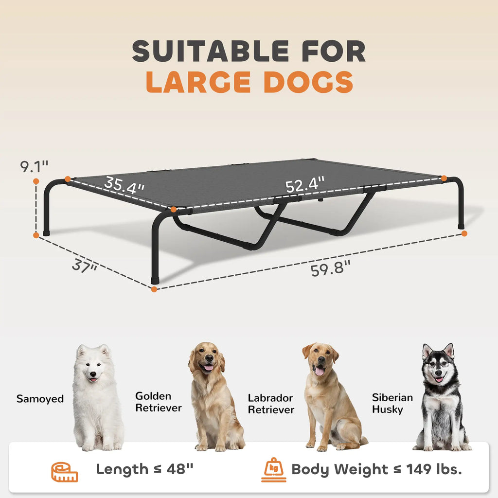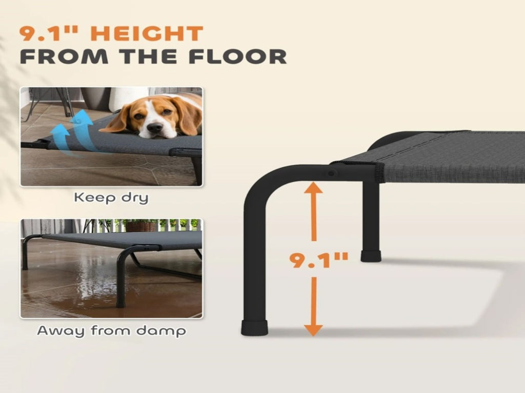 - - The 9.1" off-ground design keeps pets cool and away from pests