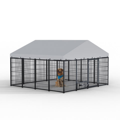 Large Dog Kennel Outdoor Pet Pens Dogs Run Enclosure Animal Hutch Metal Coop Fence with Roof Cover. W1820P318708