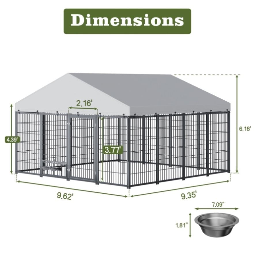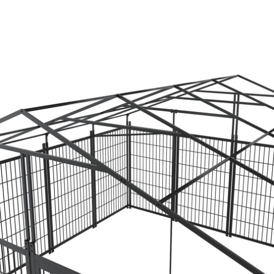 Reinforced structure: This outdoor dog cage is made of high-quality metal iron, with multiple load-bearing columns added for greater stability. The double door lock design prevents your pet from rushing out of the cage.