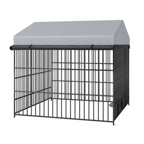 [Waterproof and Weatherproof]The included top canopy can cover the top and three sides, secured by zippers and straps, and is waterproof and UV-resistant. It has a coating that prevents the tarp from cracking, peeling, or fading over time. Peaked design prevents water accumulation. The removable design and durability provide your pet with complete protection from sun, rain, snow and debris.