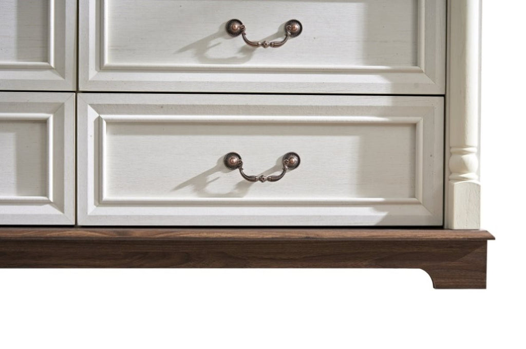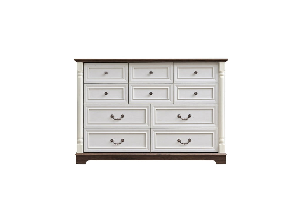 With 10 smooth-gliding drawers with antique-toned hardware that are easy to open and close. This 10-drawer dresser adds storage space to your home for clothing, extra blankets or pillows. This charming dresser complements any lover of shabby chic inspiration