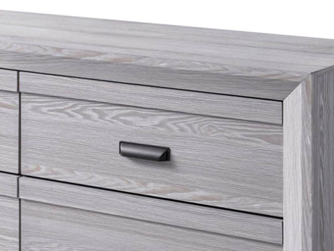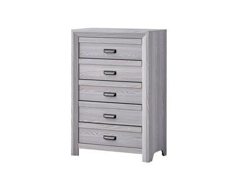 This Chest will surely make a statement in your bedroom. It features five drawers with cup handles, and comes in a gray finish.