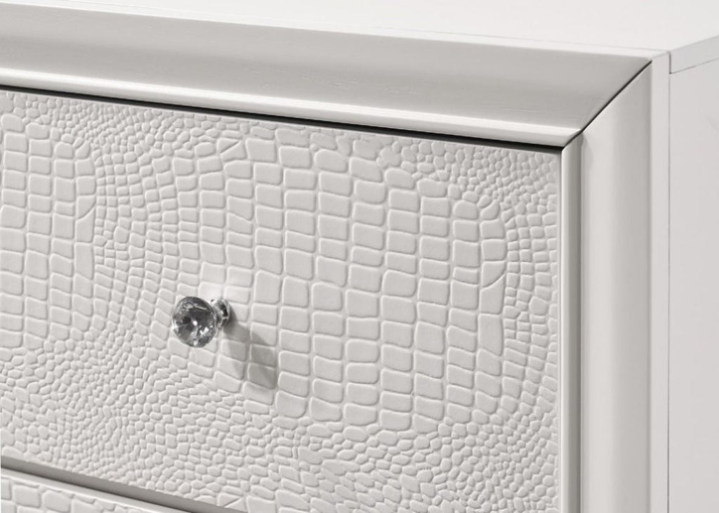 1pc Modern Glam Style White Finish Glam Seven Drawer Dresser Embossed Crocodile Pattern Wooden B011P217894