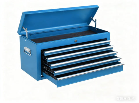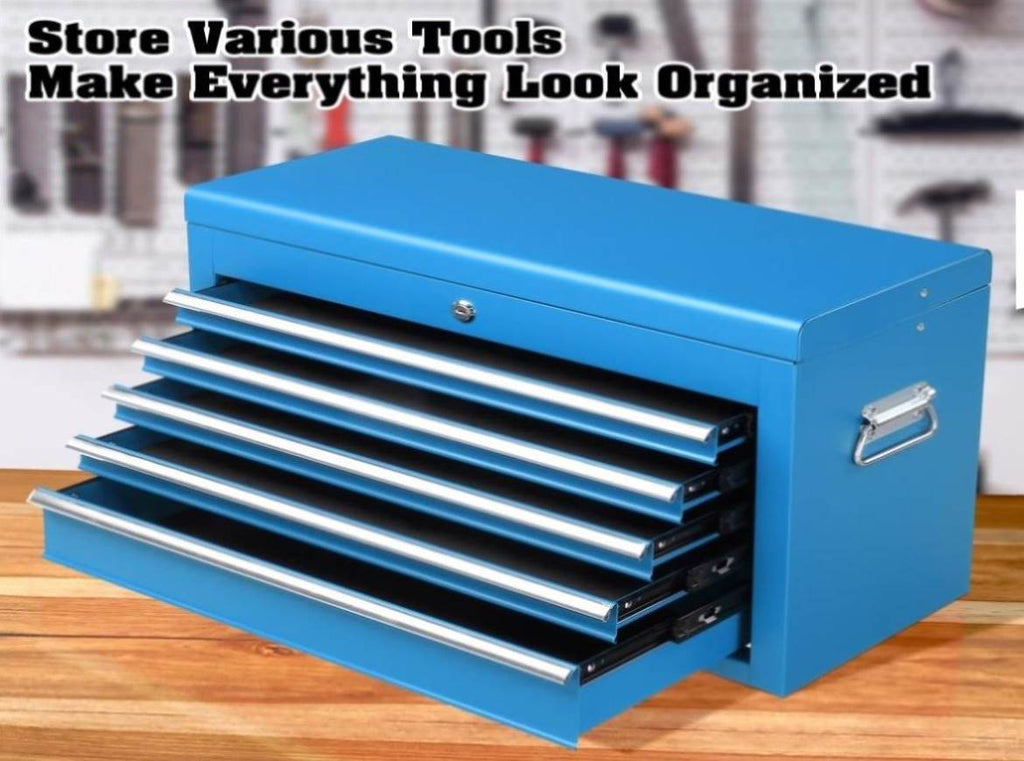 Product Description This blue 5-drawer steel tool chest is built to organize and secure your maintenance tools. Crafted from heavy-gauge steel, it supports up to 330 lbs—tough enough for daily use in garages, workshops, or job sites. The mix of 4 shallow and 1 deep drawers (fitted with protective liners) keeps tools sorted by size, while the keyed lock and drawer bar prevent unauthorized access and accidental sliding. With a lid support rod, smooth slides, and a side handle, this chest balances durability, security, and convenience for all your tool storage needs. Bullet Points 5-Sized Drawers & Protective Liners4 shallow drawers (20.9"L x 8.8"D x 1.6"H) + 1 deep drawer (20.9"L x 8.8"D x 3.3"H) fit tools of all sizes; non-slip liners protect tools from scratches and reduce noise. 330 lbs Capacity & Heavy-Steel BuildMade of thick steel for long-lasting durability; 330 lbs max load capacity supports a full set of maintenance tools (wrenches, screwdrivers, etc.). Secure Locking SystemKeyed lock secures all drawers ; drawer lock bar prevents accidental sliding during transport—keep tools safe at home or on job sites. User-Friendly FeaturesSmooth drawer slides for easy access; lid support rod holds the top open safely; built-in side handle enables convenient portability. Ready-to-Use Out of the BoxFully assembled—no setup required; includes drawer liners, 2 lock keys, and all functional accessories for immediate use.