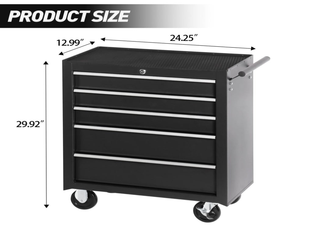 5-Drawer Rolling Tool Chest w/Lock & Key, Tool Storage Cabinet with Wheels, Top Cushion & Drawer W2660P217921