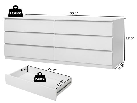 6 Drawer Double Dresser for Bedroom, Wide Storage Cabinet for Living Room Home Entryway, White 76423691
