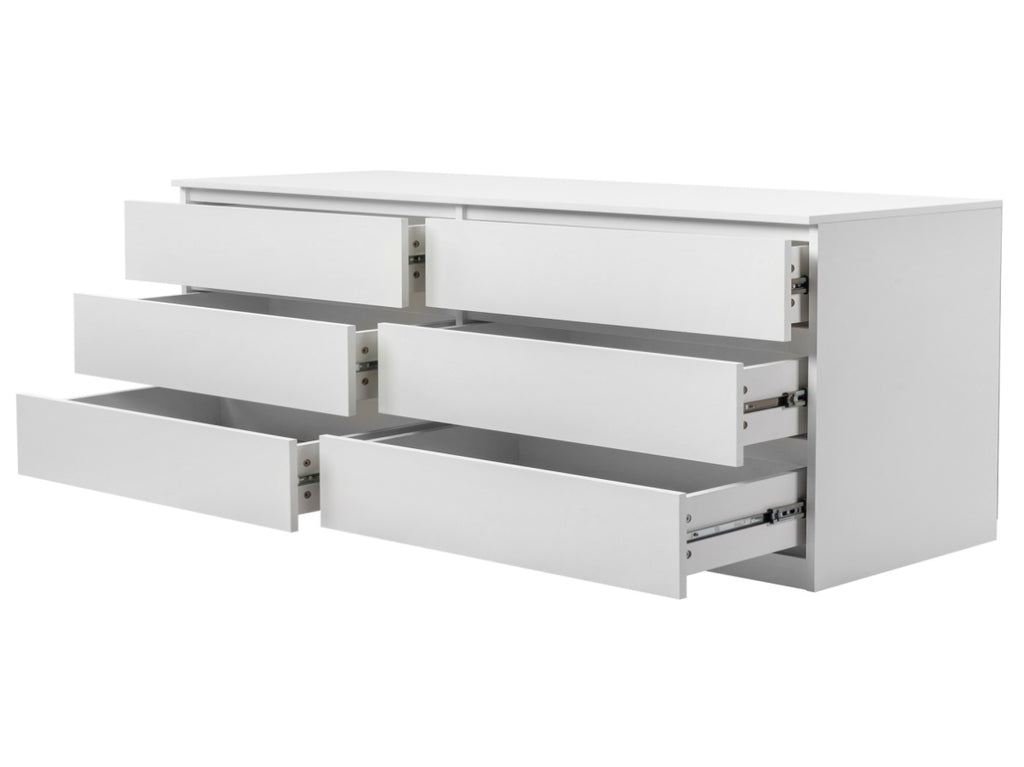 Introducing the FCH 6-Drawer Double Dresser, a compelling blend of modern design and stellar functionality. Crafted from robust P2 class particle board, this dresser offers durability and strength for everyday use. Flaunting a chic white finish, it is an exquisite addition to your bedroom, living room, or entryway. Its wide drawers provide ample storage space for your belongings, ensuring your home stays clutter-free. Organize in style with this versatile piece that marries aesthetic appeal with practical utility.