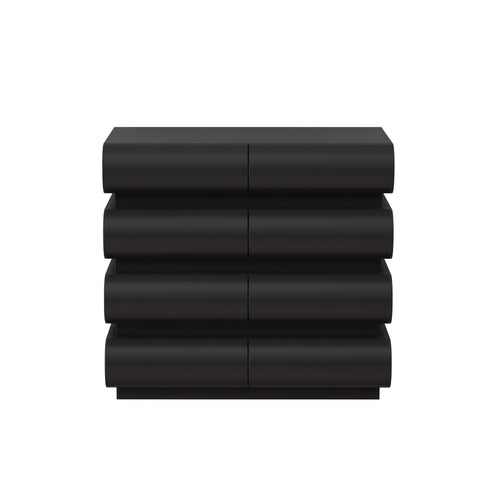 MINIMALIST MODERN: Showcase a minimalist modern style for your bedroom with this black pull-less dresser. The sleek black dresser, handle-less slide drawers, crisp vertical and horizontal lines, and graceful curved lines are perfect for your home's theme.