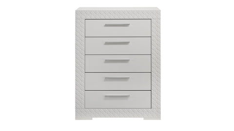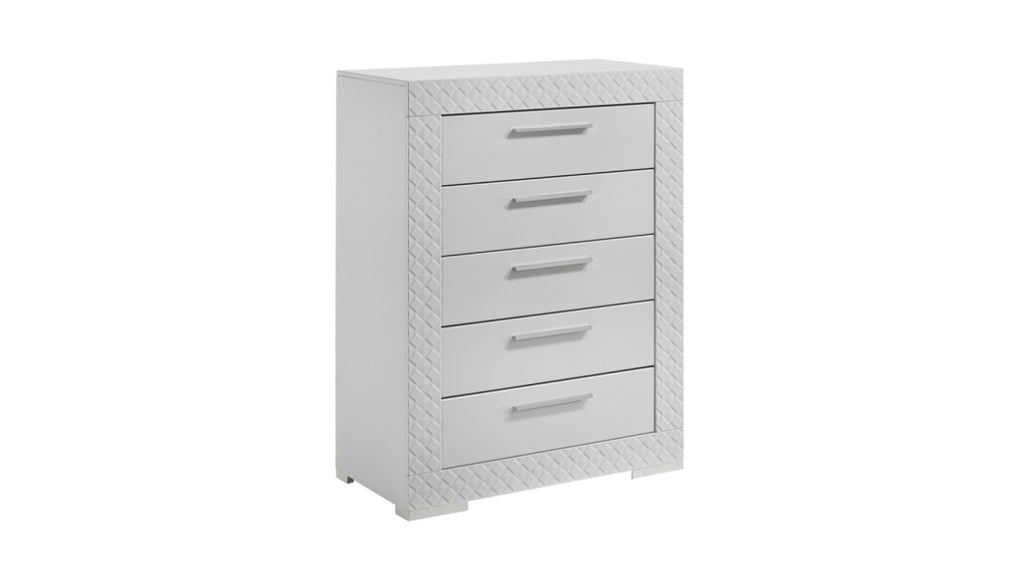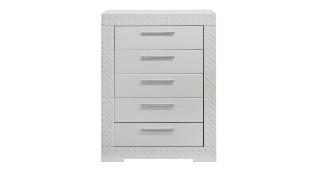 This sleek 5-drawer chest offers a perfect blend of modern style and functional storage. The smooth high-end lacquer white finish is complemented by quilted textured detailing, giving the chest an elegant, contemporary look.