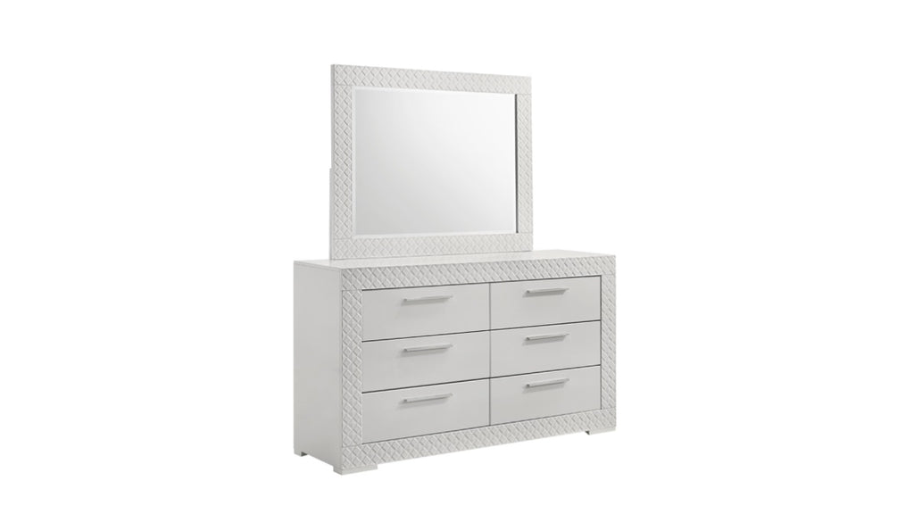 The 6-Drawer Dresser brings a modern and luxurious touch to your bedroom with its sleek high-end lacquer white finish and intricate quilted detailing.