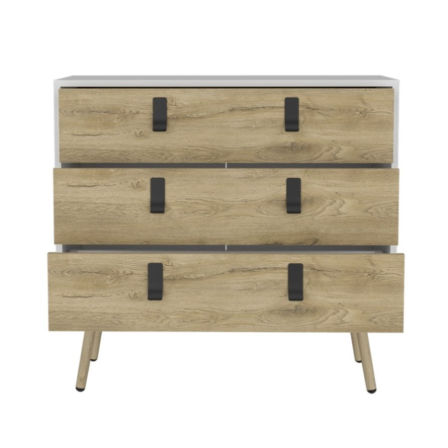 Dresser 29"H, 3 Drawers Dresser with Handles and Wooden Legs, White / Macadamia B097P167456