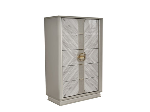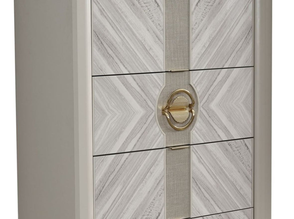 Eternity Traditional Style 5-Drawer Chest Made with Woodand Gold Accents in Beige B009P291908