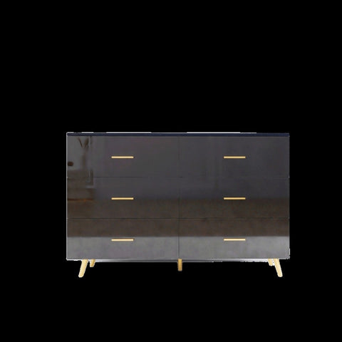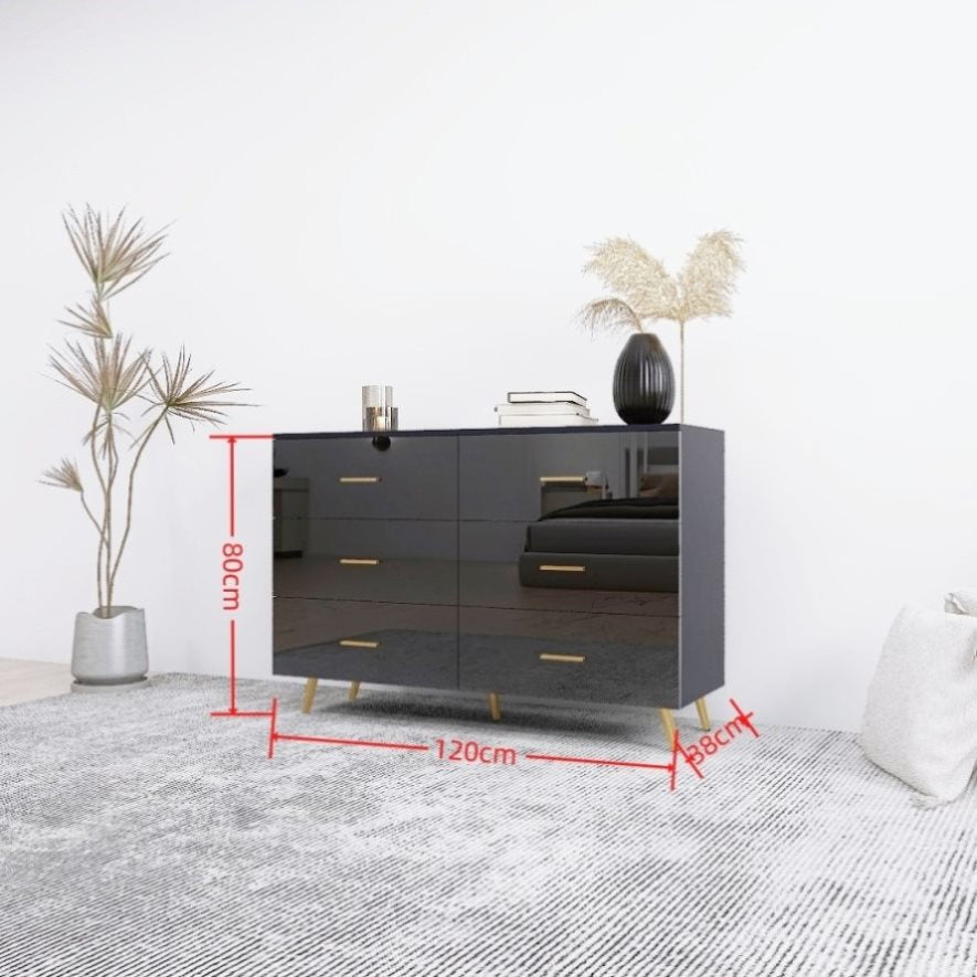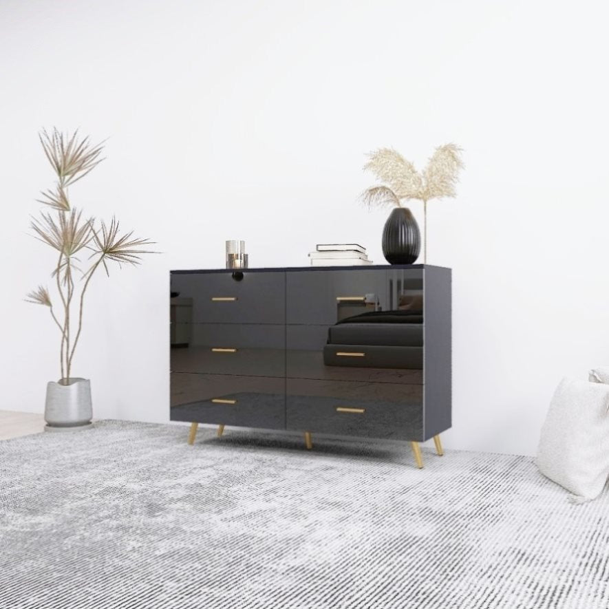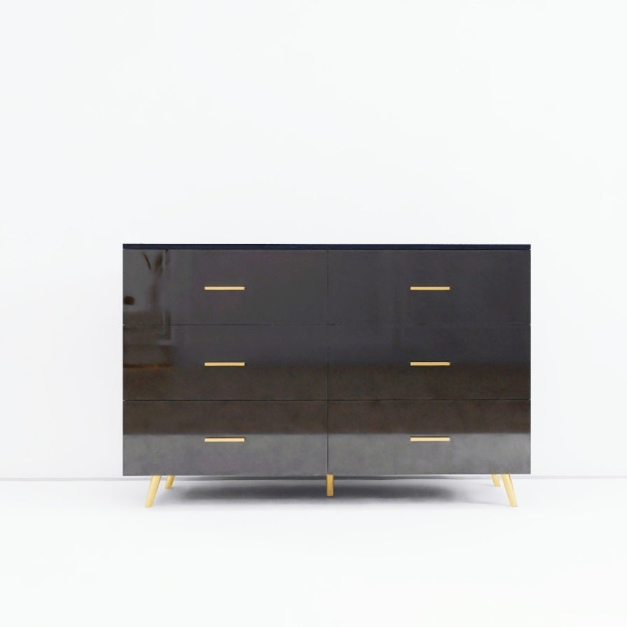 High Glossy Surface 6 Drawers Chest of Drawer with Golden Handle and Golden Steel Legs Black Color W2139134916