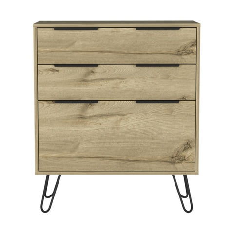 The 3-drawer design provides practical and organized storage for clothing, office supplies, or accessories, maintaining a sleek and compact profile. The Light Oak finish adds a bright, natural wood tone with a warm hue, while four robust steel legs ensure exceptional stability, and the high-quality top surface enhances durability and functionality.