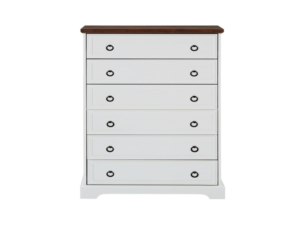 Handy design Dresser with 6 large drawers are all equipped with wide slides, get painstaking treatment for smooth gliding and easy use. The brackets allow the drawers to come out of the dresser, clothing and socks can be stack to conserve space.