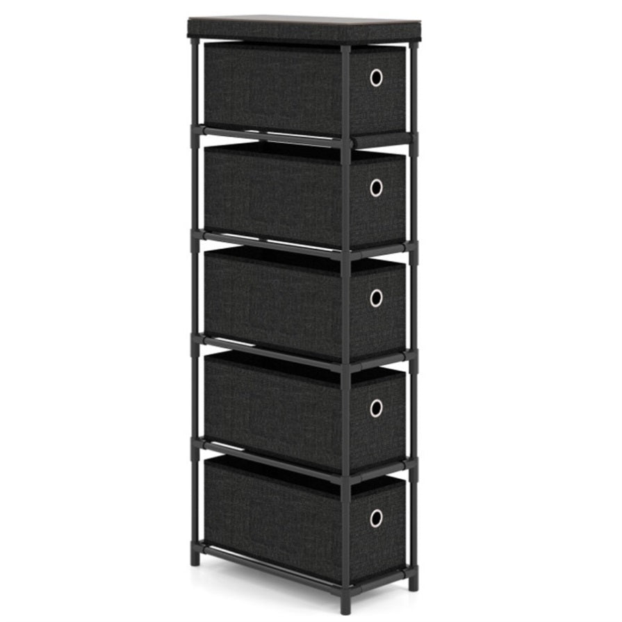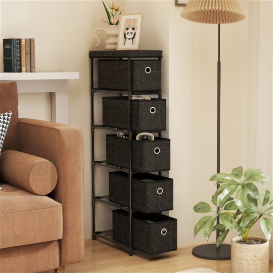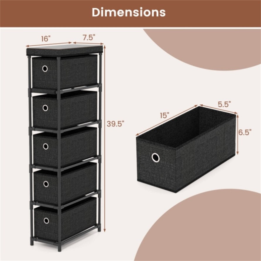 ● Maximize Your Storage Space: The storage cabinet features 5 removable, foldable drawers with easy-pull metal handles, providing ample space for all your needs.  Moreover, it comes with a wide countertop for added display space.