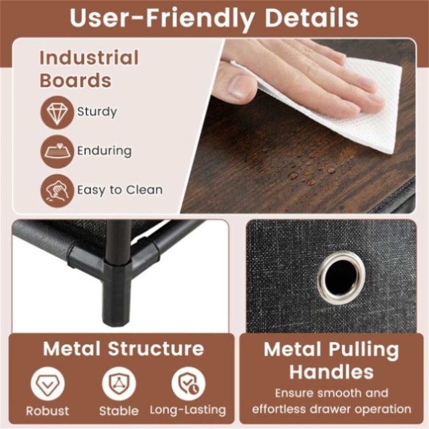 ● Stylish Appearance: The industrial wood top of the chest of drawers is both enduring and easy to maintain.  Additionally, the narrow dresser boasts a modern minimalist design that adds a touch of elegance to any space.