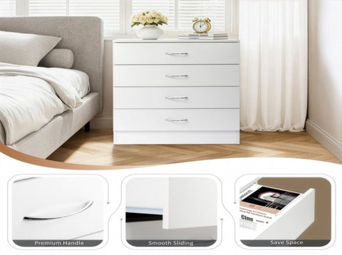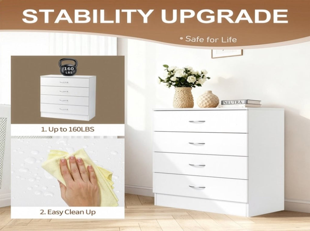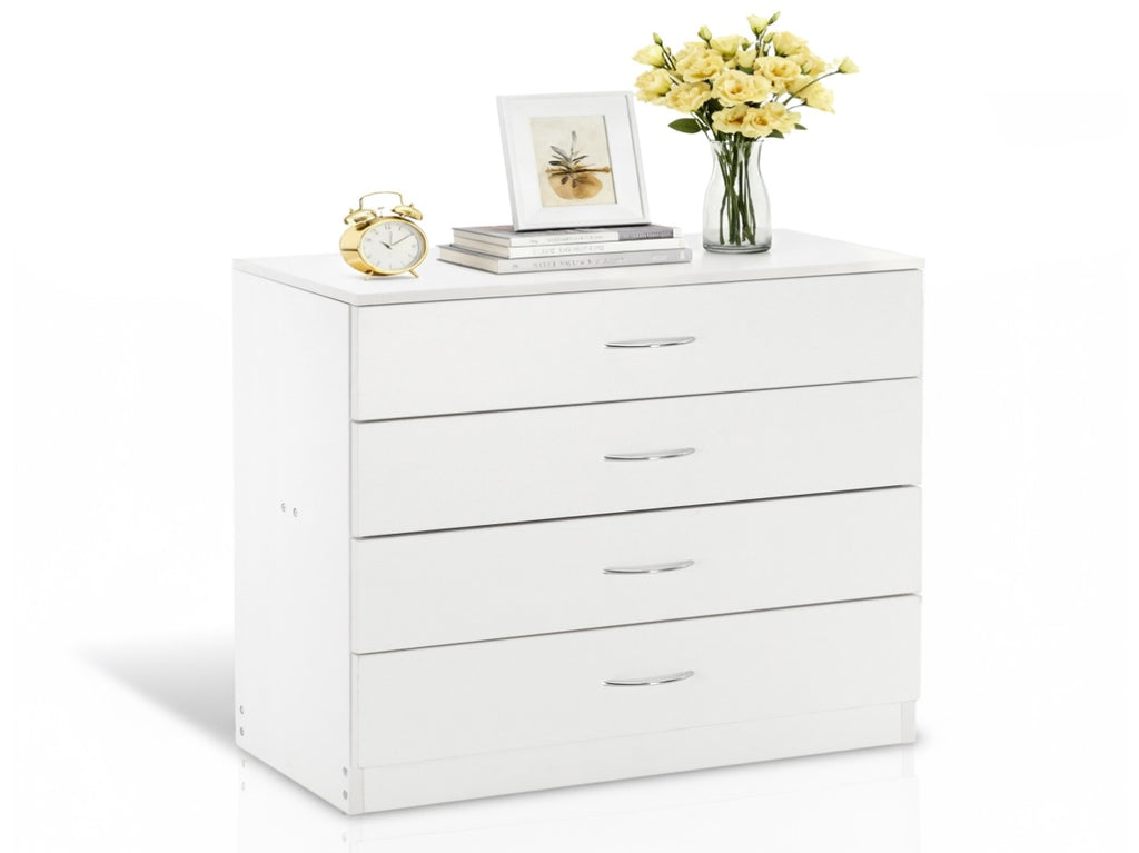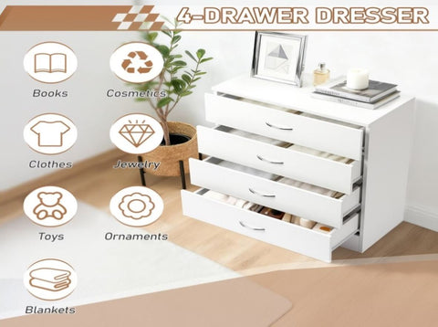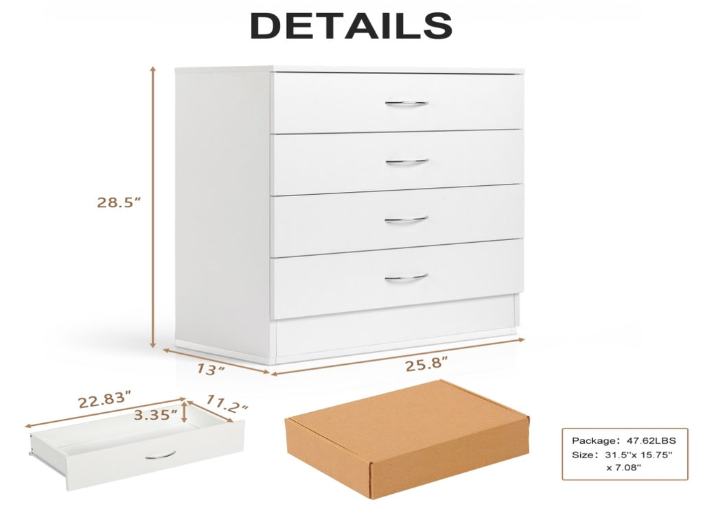 What a wonderful Modern Simple 4-Drawer Dresser! It is made of high quality P2 grade 15mm particle baord material, durable and non-toxic for you daily use. It is suitable for indoor use, like family room, bedroom and living room. It is the perfect solution to save space and store scattered and small gadgets. It is delicate design with beautiful appearance, and gives color to your life. Actually, it is a good decoration to embellish your home. How can you miss it anymore?