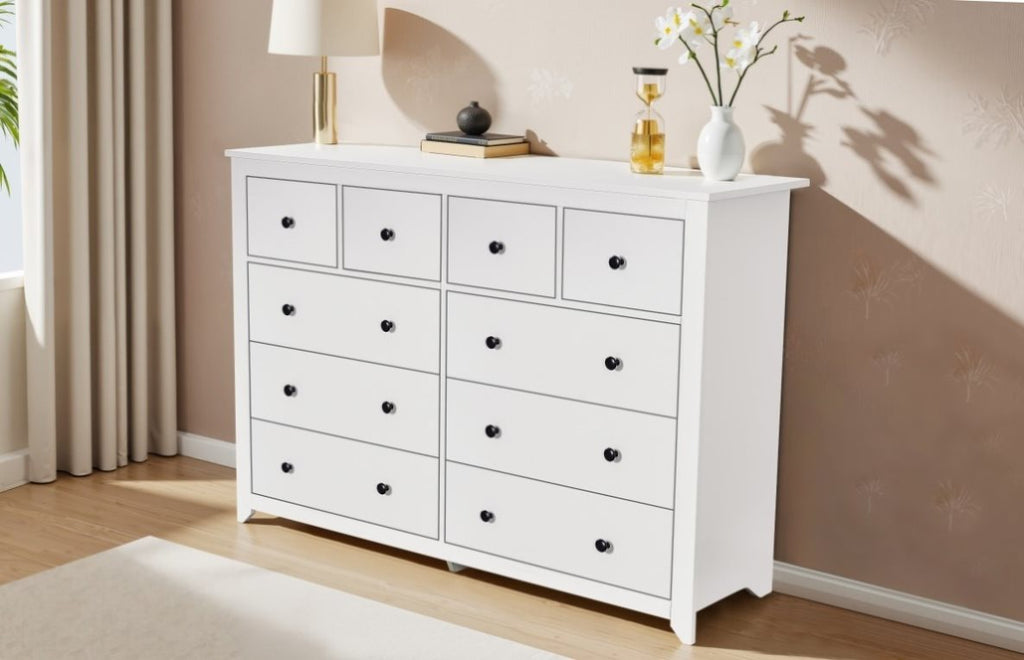Modern White 10-Drawer Dresser for Bedroom - Ample Storage Wide Chest of Drawers, Sturdy & Safe W1785P298992