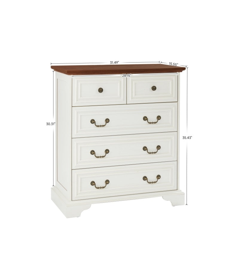 - Unique Vintage Design Dressers: Embrace the beauty of vintage aesthetics with this 5-Drawers dresser. Designed with embossed textures and beveled edges on the furniture exterior, our dressers exude sophistication and elegance. The Roman column-style handle provides a classic finishing touch, making it the perfect storage solution for your bedroom essentials.