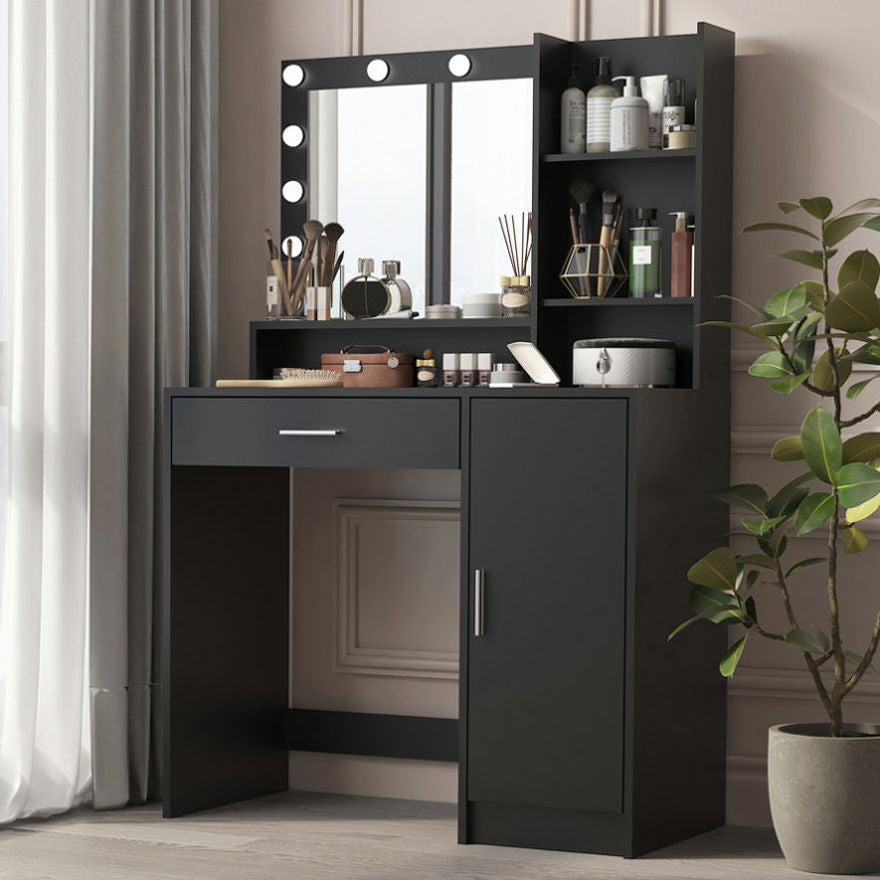Spacious Storage: This dressing table set includes one oversized drawer, three shelves, and three levels of cabinets. All your makeup and skincare products can be neatly organized on the dresser, bidding farewell to small, cluttered desks and enhancing your daily life.