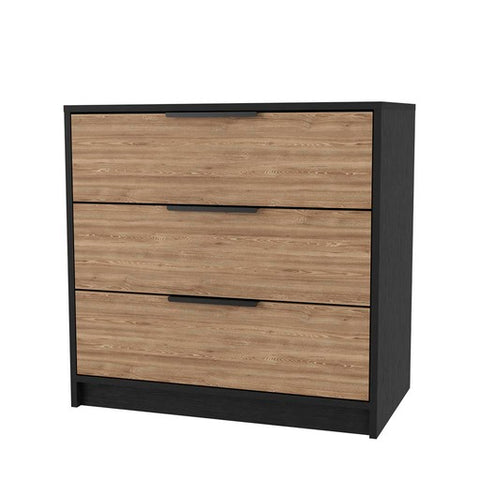Featuring three spacious drawers with black handles, all-metal hardware, and an exquisite finishes combination will make this piece stand out in your bedroom.