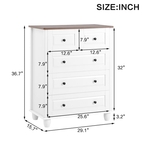 White Dresser with 5 Drawers, Tall Chest of Drawers, 5 Drawer Dresser with Deep Space, Wood Storage W1157P307950