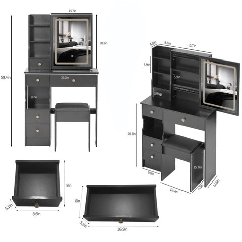 [Specially designed for small spaces]: This dressing table is 29.2" long and 50.4" high, designed specifically for small bedrooms. Its advantage is small size, less space occupation, which is suitable for little girls to use. Its disadvantage is that due to its small size, it is not suitable for adult ladies over 5.5 feet tall. Therefore, please note before purchasing that this is a small-sized dressing table set.