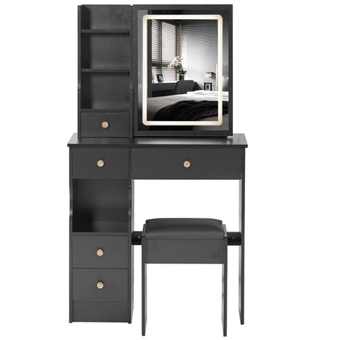 [Configuration]: This dressing table is a basic version, including a mirror light, not include built-in socket or hair dryer stand. Due to the same installation steps for the same product with simple, basic, and luxurious configurations, the installation manual is in a universal form.