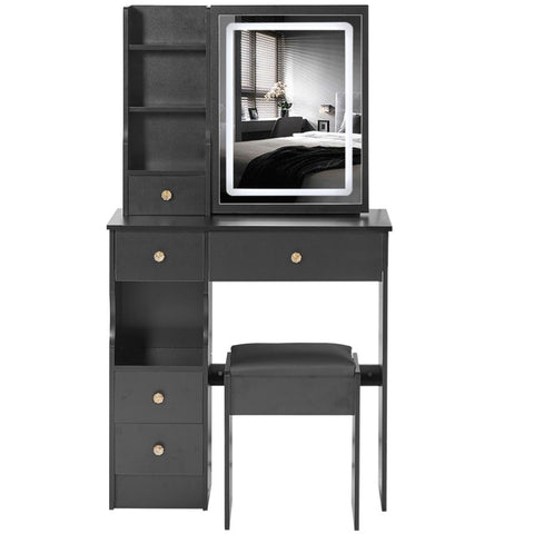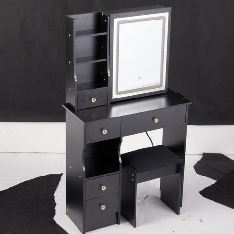 29.2" Small Size Left Drawer Desktop Vanity Table Cushioned Stool, Large Sliding, Touch Control, W3258P299612