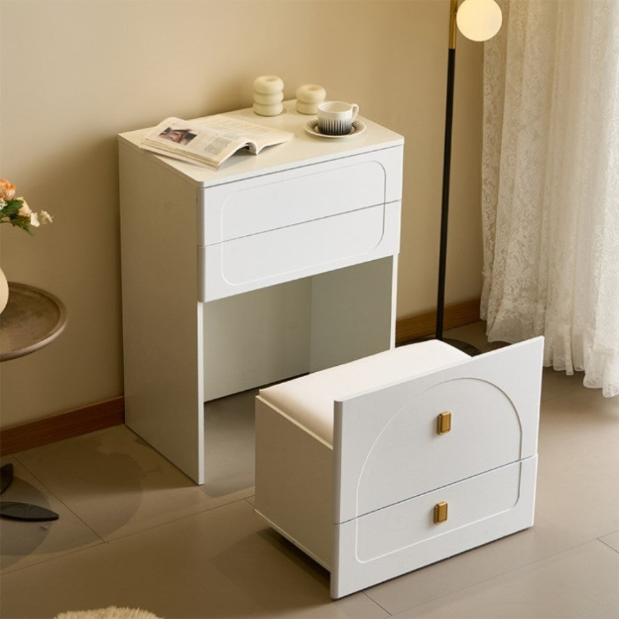 Ample Storage Space: This Vanity Table is equipped with 7 inches deep hidden storage space and visual drawers to easily organize all kinds of cosmetics, perfumes, makeup brushes and jewelry, three hidden storage drawers and removable cushioned stools provide more storage space, while curved corners are designed to avoid bumps and injuries when your family is using it